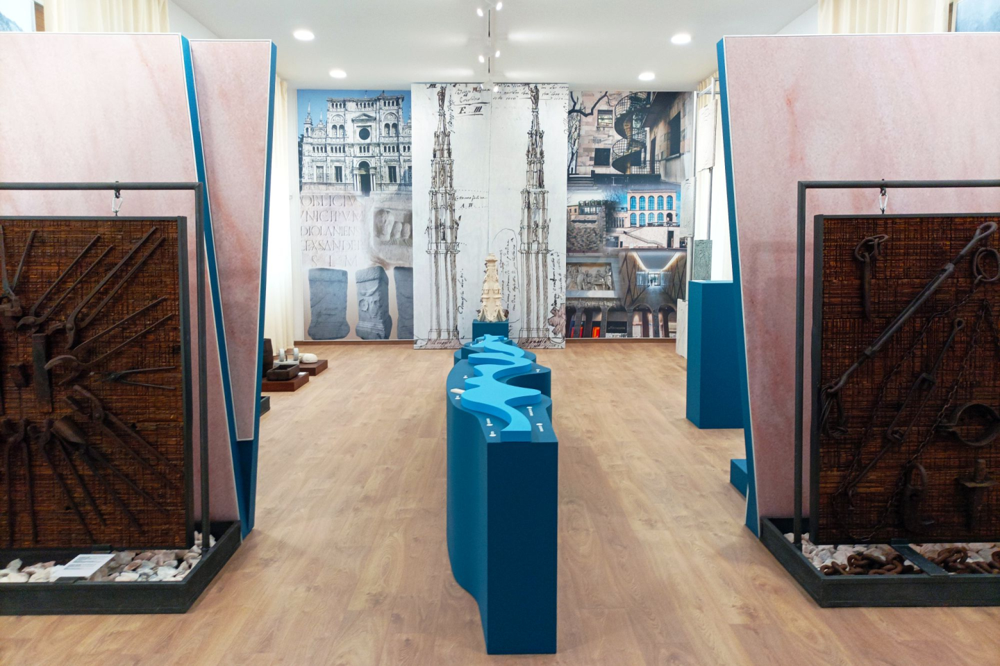 In zwei Sälen im Erdgeschoss können die Besucherinnen und Besucher den Weg des Marmors und des Granits von der berühmten Cava Madre di Candoglia („Mutter“ aller Steinbrüche in Candoglia) entlang der Wasserstraße bis nach Mailand verfolgen und die verschiedenen Prozesse kennen lernen, die diese Steine in der ganzen Welt so beliebt gemacht haben. Der Saal ist auch der künstlerischen Verwendung von Marmor und Granit gewidmet. Zu sehen sind Werke der dänischen Künstlerin Eva Sørensen und eine kleine Skulptur aus rosa Marmor von Giovan Battista Tedeschi.