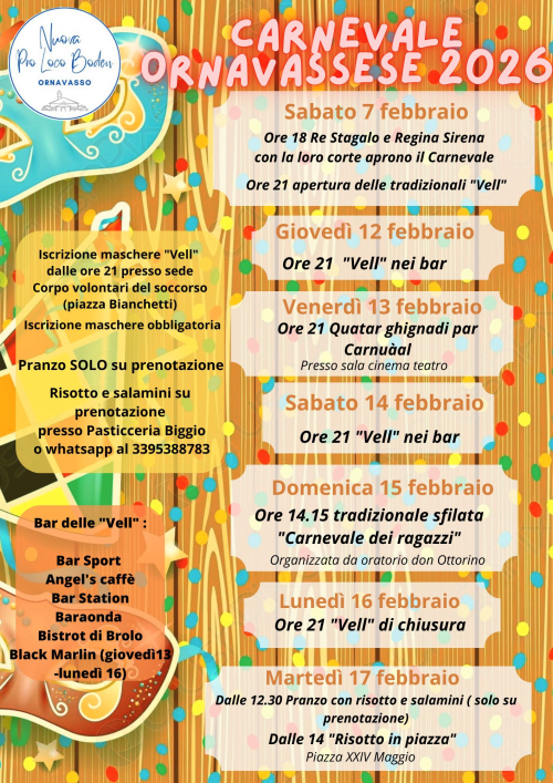 Carnevale Ornavassese 2026SABATO 7 FEBBRAIOore 18 Re Stagalo e Regina Sirena…