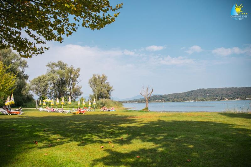 Camping Rose is located on the southwestern shore of Lake Maggiore within the Nature Reserve of Reeds Dormelletto with access to a quiet beach and grassy with ample shade.