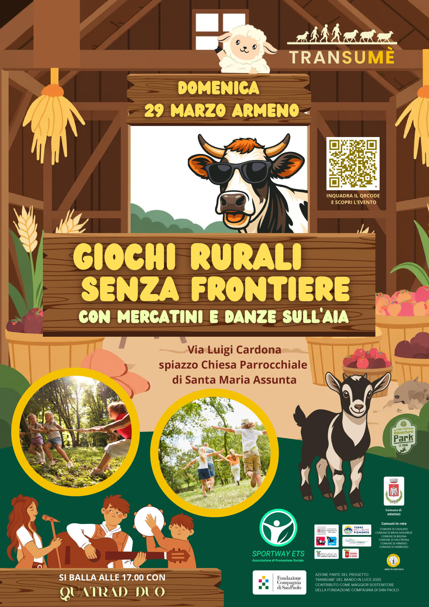 Il cuore dell'evento scatterà dalle 14.30 alle 16.30 con i "Giochi rurali senza frontiere". A seguire, alle ore 16.30, un momento speciale dedicato alla presentazione conclusiva del progetto Transumè,