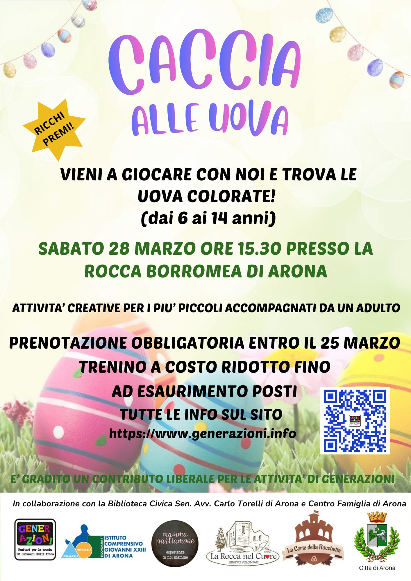 Sabato 28 marzo dalle ore 15:00 si terrà presso la Rocca Borromea di Arona alla Caccia alle Uova, attività creative e uova colorate (dai 6 ai 14 anni)!