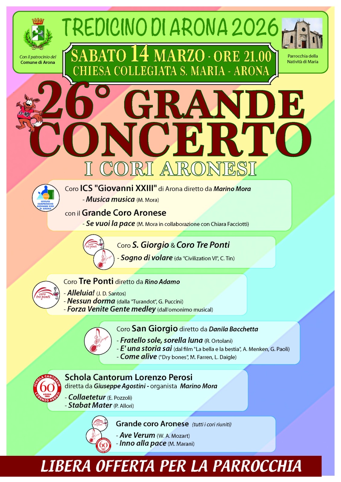 26° Grande Concerto del Tredicino in Collegiata S. Maria con i Cori Aronesi