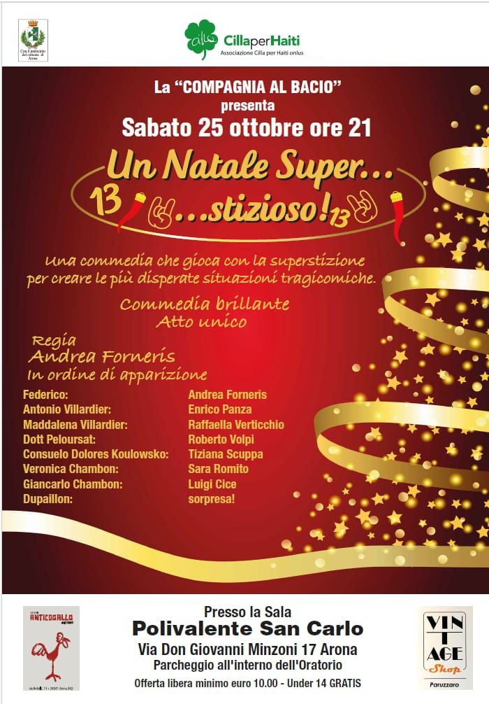 Sabato 25 ottobre alle ore 21.00 si terrà Un Natale Super…stizioso!, una commedia che gioca con la superstizione per creare le più disparate situazioni tragicomiche.