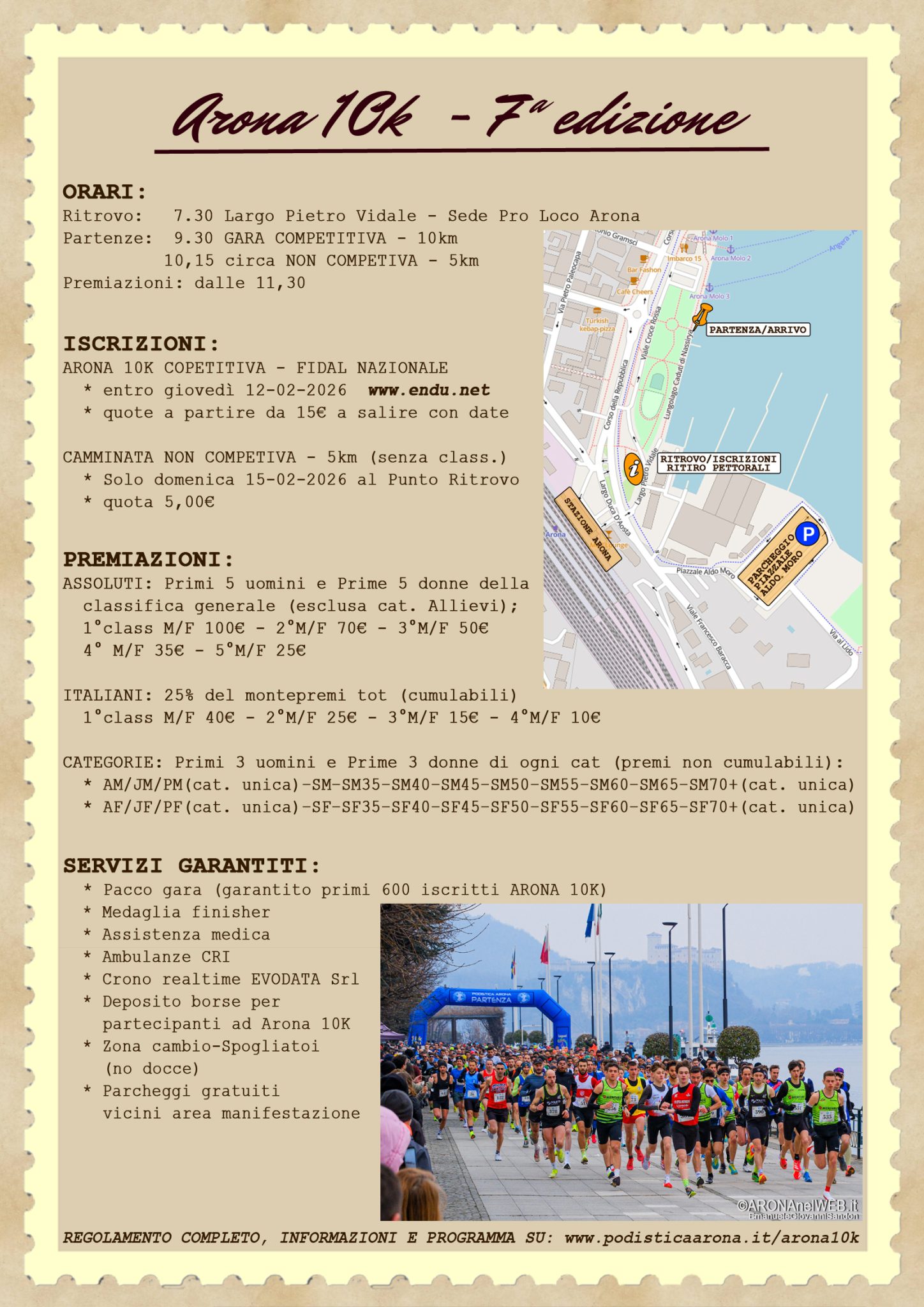 Regolamento completo, informazioni e programma: https://www.podisticaarona.it/arona10k/