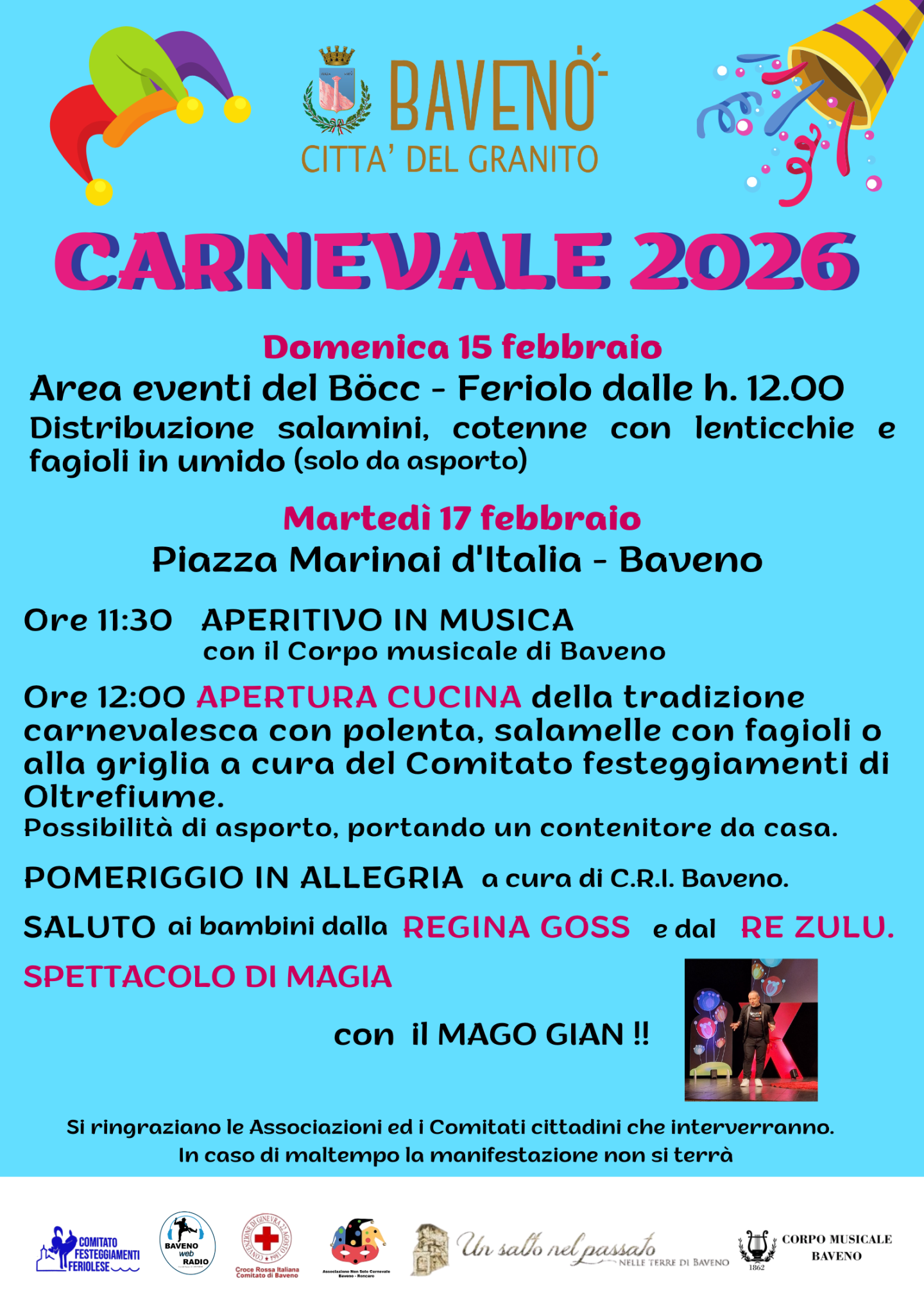 Domenica 15 febbraio 2026, ore 12.00 presso l'area eventi del Böcc, Feriolo