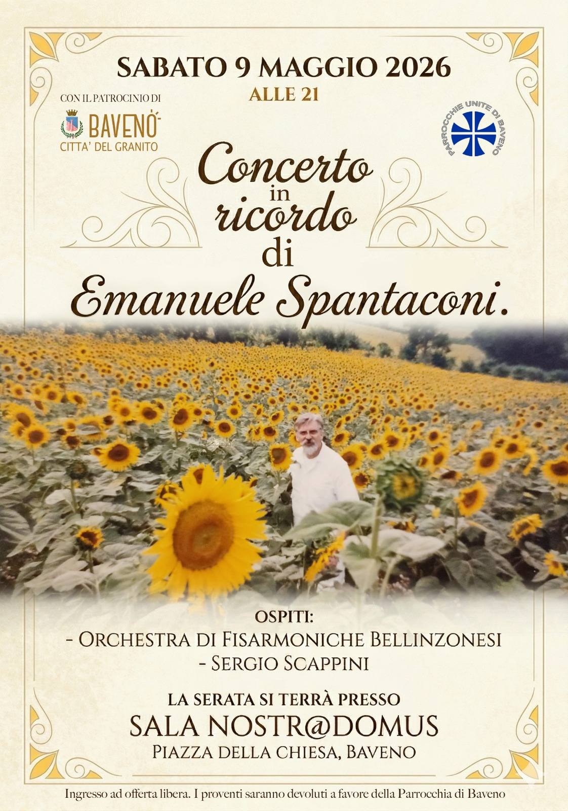 I proventi saranno devoluti a favore della Parrocchia di Baveno.