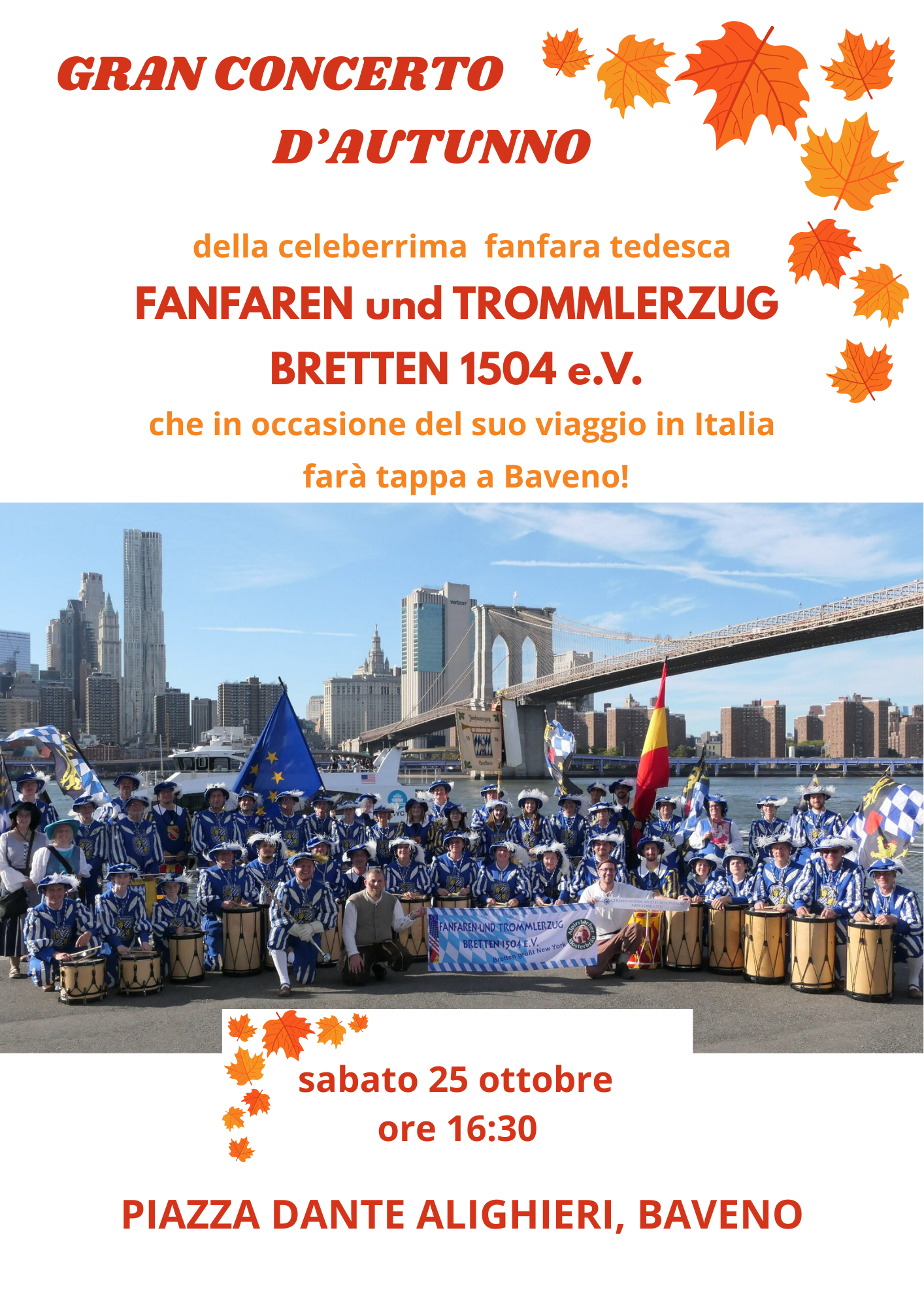 Esibizione della banda musicale tradizionale tedesca FANFAREN UND TROMMLERZUG BRETTEN 1504 e.V sotto il portico del Municipio, in Piazza Dante Alighieri.