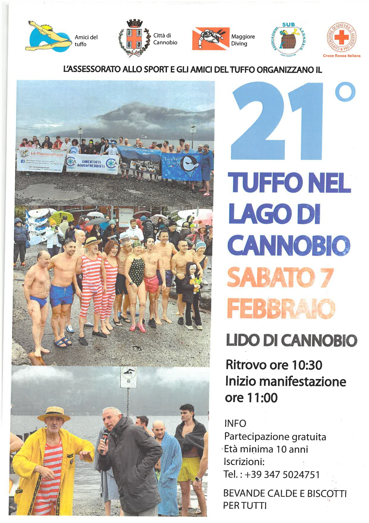 La 21ª edizione del “Tuffo nel lago” si terrà sabato 7 febbraio a partire dalle ore 10:30 presso il Lido di Cannobio.