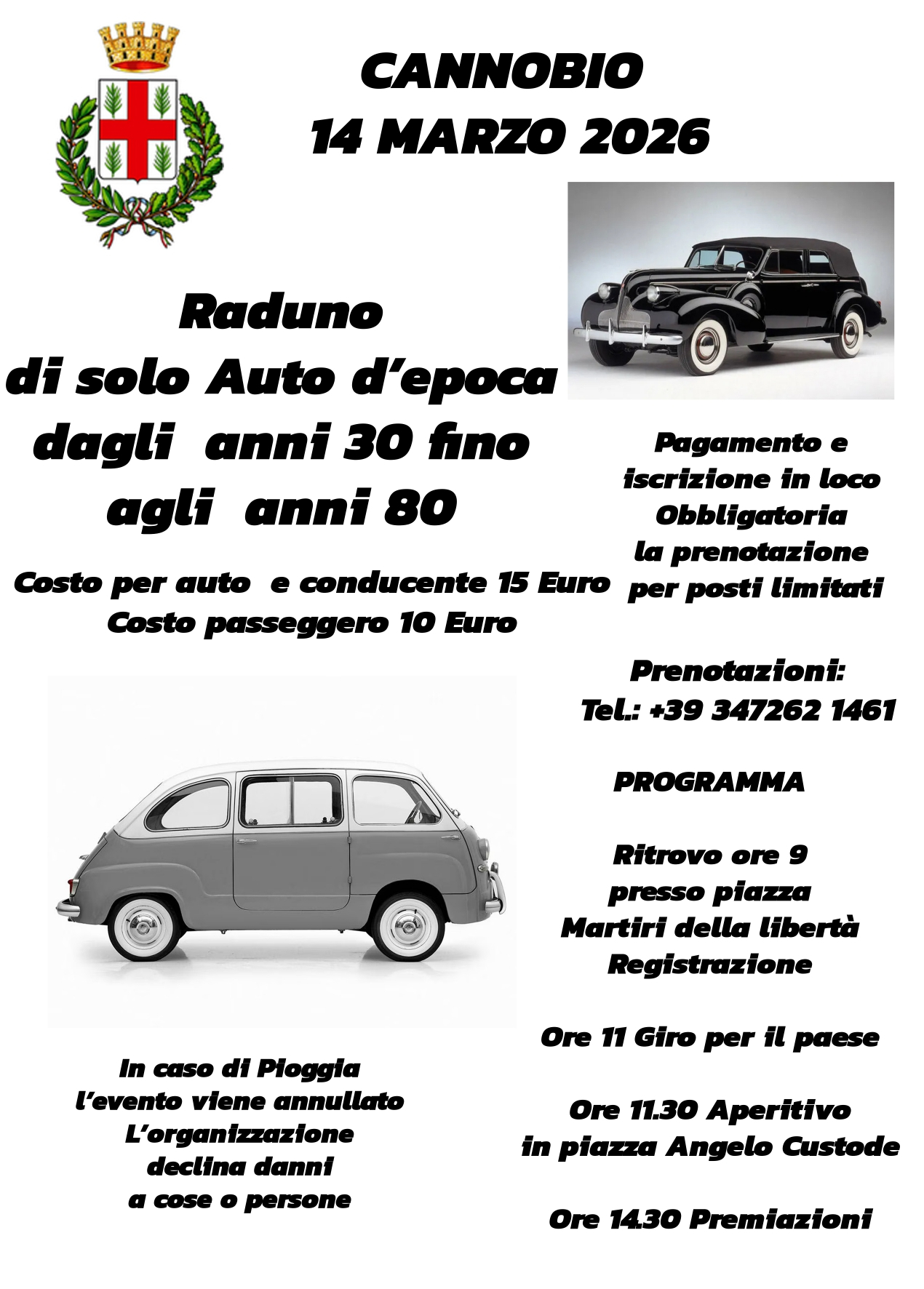 In caso di pioggia l'evento verrà annullato.