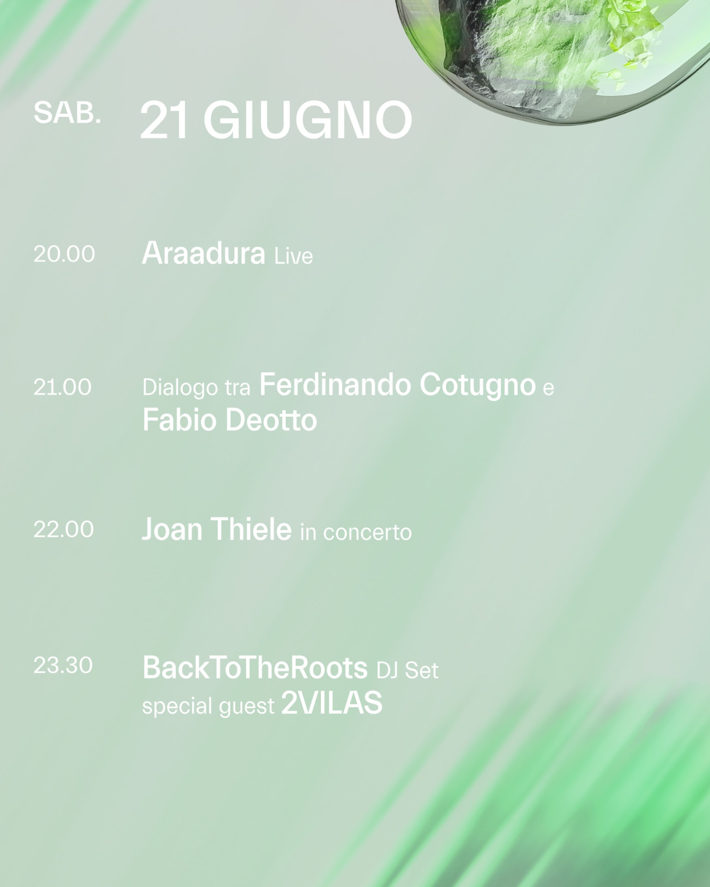 Anche la seconda giornata del festival finirà con grandi concerti ed esibizioni musicali, prima fra tutti quella della cantautrice Joan Thiele alle ore 22:00, che porterà a Tones Teatro Natura sonorità internazionali tra R&B, soul e jazz. Alle ore 23:30 sarà la volta di 2VILAS, duo di DJ e produttori spagnoli, che farà vibrare la notte con la sua musica elettronica raffinata. A chiusura, ci sarà alle ore 01 il DJ set Backtotheroots (BTTR), progetto nato dalla volontà di promuovere giovani DJ e Producer locali per favorire un’attività di clubbing nell’area montana.