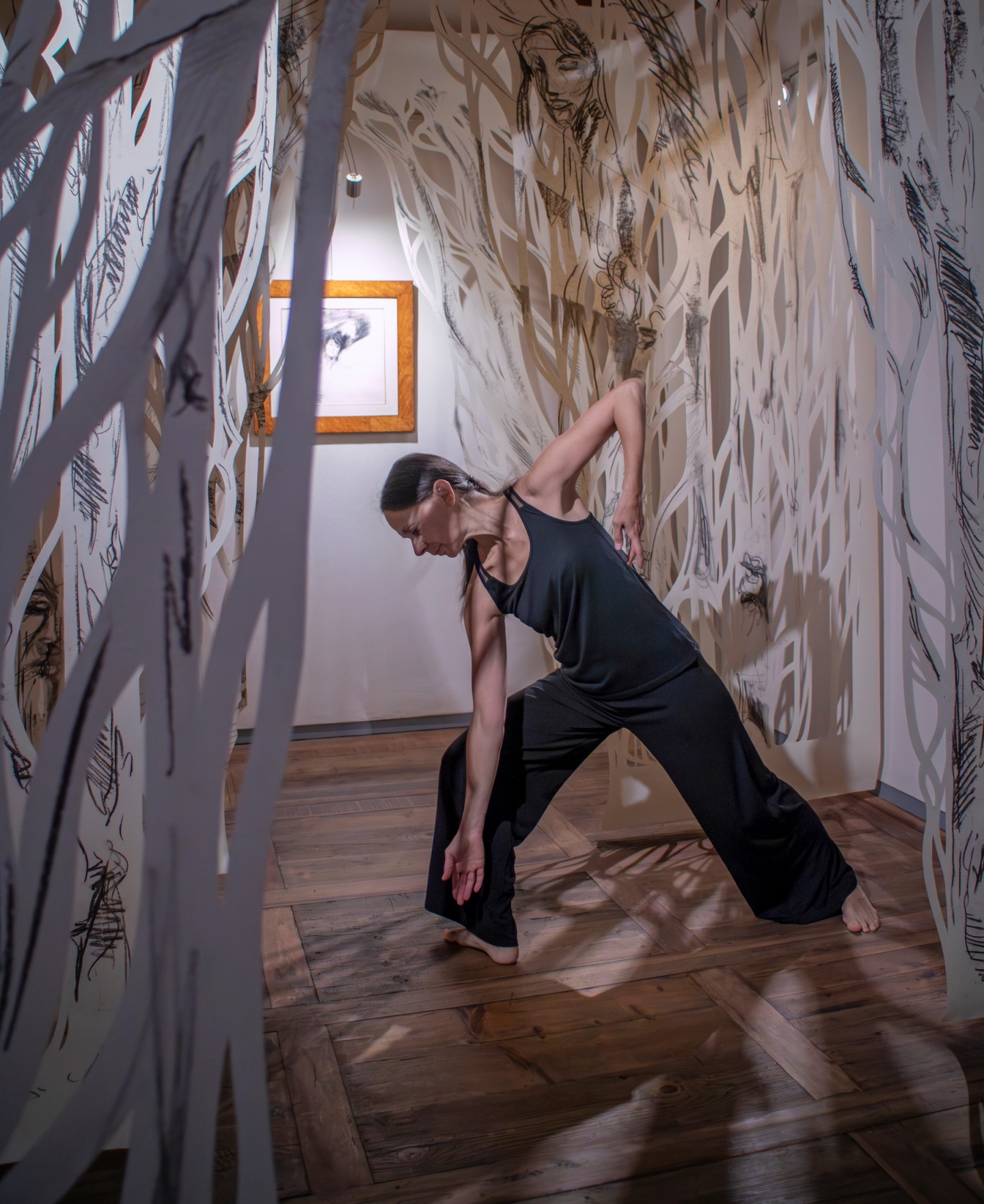 Nelle stanze di Casa De Rodis dimorano le opere della mostra 10 ANNI A CASA DE RODISQui vengono accolti i visitatori, ma chi le farà vivere in questa occasione speciale sarà la danza di Danila Massara.