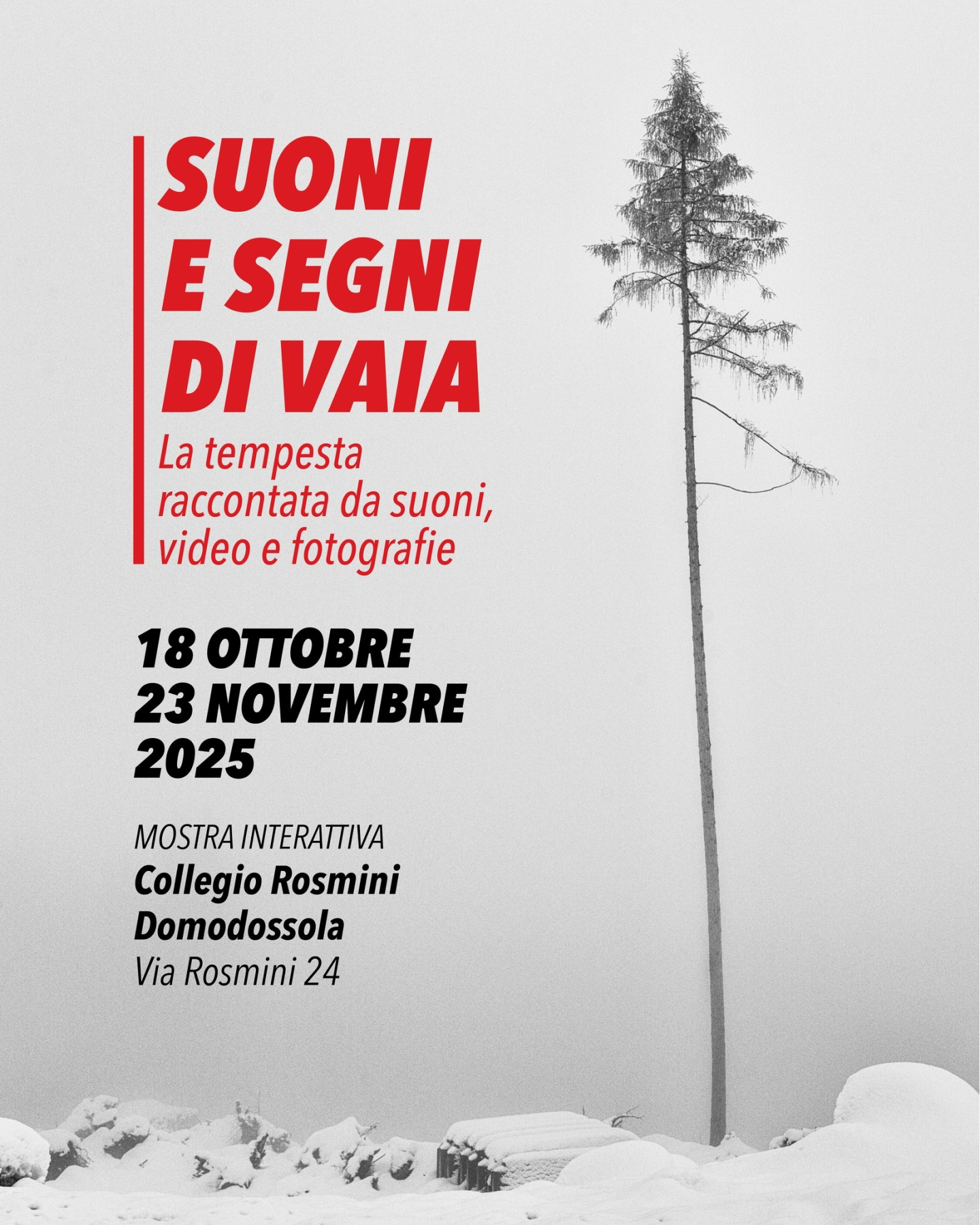 Dal 18 ottobre al 23 novembre presso il Collegio Mellerio Rosmini, via Rosmini 24, Domodossola (VB), vi sarà la mostra: Suoni e segni di Vaia. La tempesta raccontata dai suoni, video e fotografie.