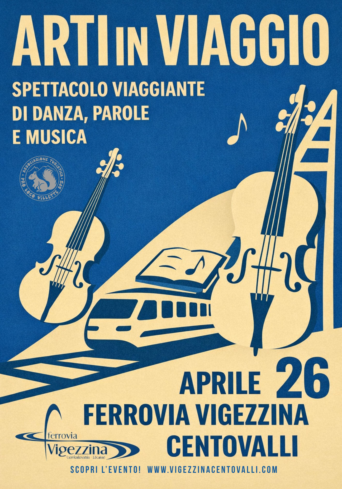 Domenica 26 aprile 2026 alle ore 14:00 si terrà a bordo della ferrovia Vigezzina Centovalli uno spettacolo viaggiante di danza, parole e musica: ARTI IN VIAGGIO.