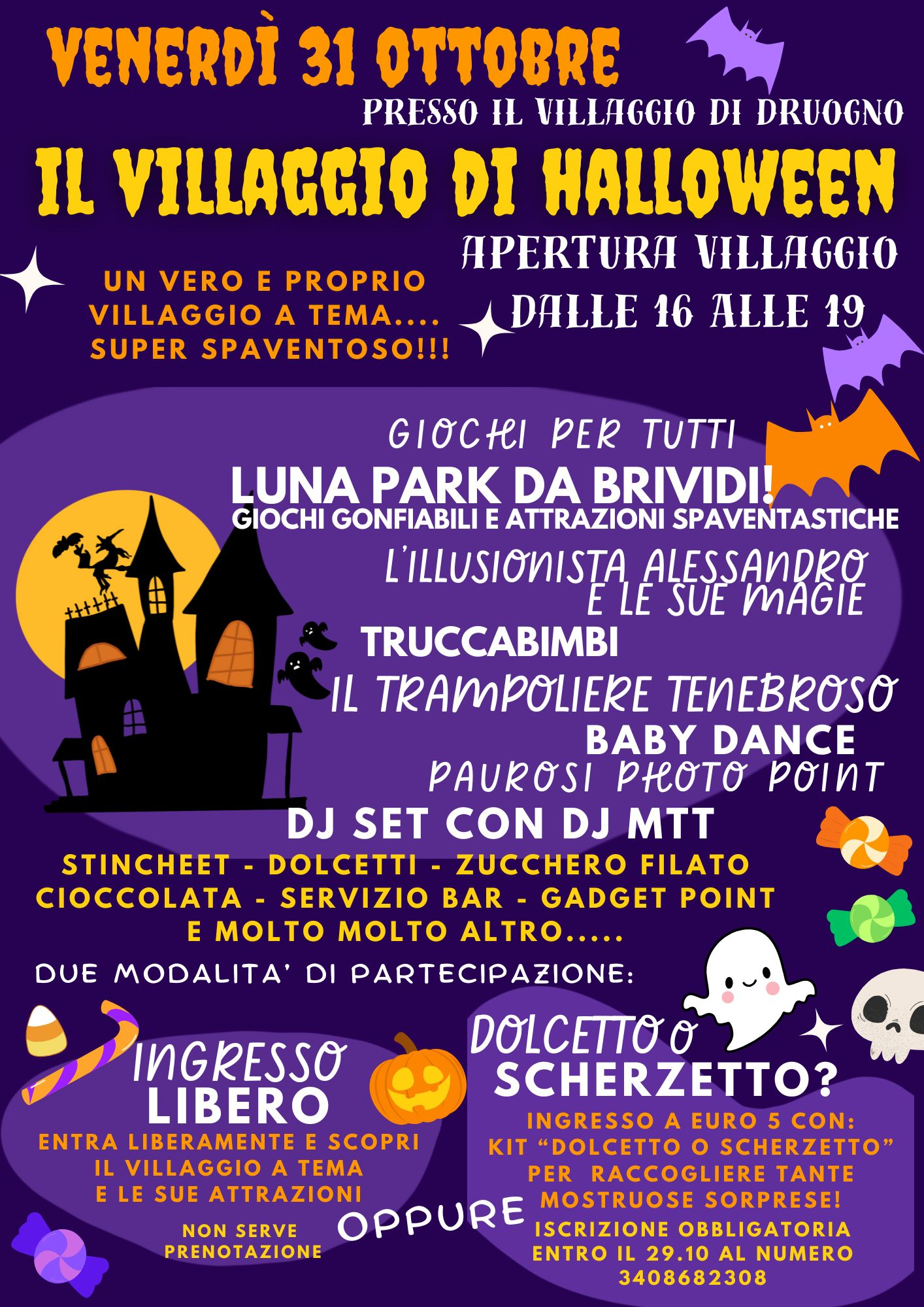 Questo evento nasce da una proposta di collaborazione lanciata dall'Ufficio Turistico di Druogno agli abitanti del Rione Villaggio, che rispondendo a questa chiamata si prodigano per decorare con addobbi e creazioni creative le vie del paese, zucche, streghette e fantasmini creando un Halloween con un'atmosfera misteriosa ma divertente, adatta a tutti i bambini.