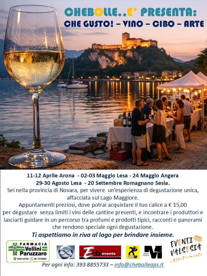 Nel weekend del 29-30 Agosto si terrà l'appuntamento enograstronomico: Che Bolle a Lesa, una manifestazione che riporta il vino anche al suo carattere originario di elemento portante della tavola: degustazioni, prodotti alimentari tipici, abbinamenti, cucina e tutto il variegato mondo enogastronomico di cui sono ricche tutte le regioni italiane.