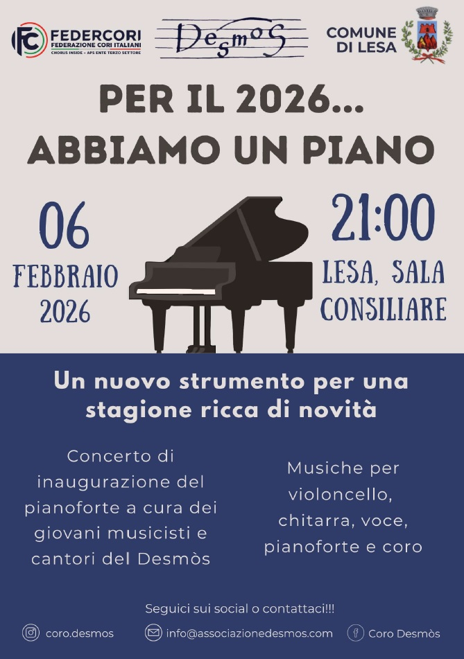 Il concerto si terrà venerdì 6 febbraio 2026, alle ore 21.00 presso la Sala Consiliare di Lesa.
