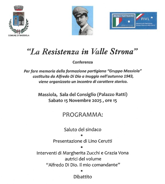 Per fare memoria della formazione partigiana "Gruppo Massiola" costituita da Alfredo Di Dio a Inuggio nell'autunno 1943, viene organizzata una conferenza di carattere storico.