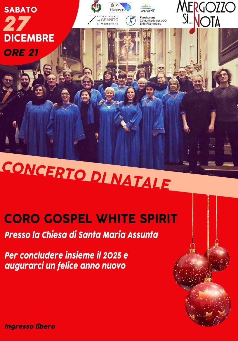 Sabato 27 dicembre 2025 alle ore 21.00 presso la Chiesa di Santa Maria Assunta di Mergozzo si terrà il concerto con le voci del Coro gospel White Spirit.