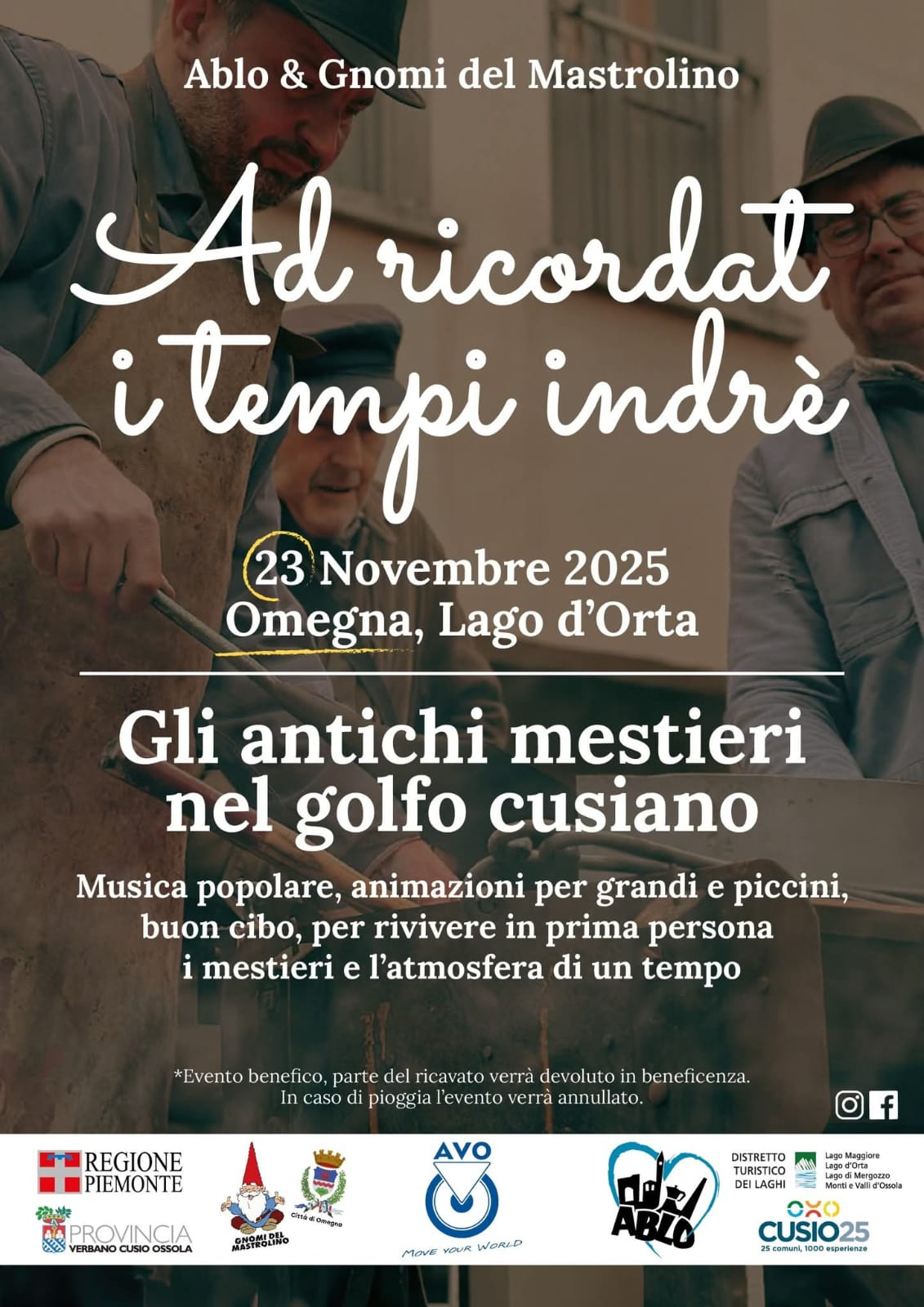 Ablo e Gli Gnomi del Mastrolino, tornano con una nuova edizione di "Ad ricordat i Tempi indré- Gli antichi Mestieri nel Golfo del Cusio", un evento incredibile che rievoca e riproduce l'atmosfera di un tempo, attraverso i mestieri del passato.