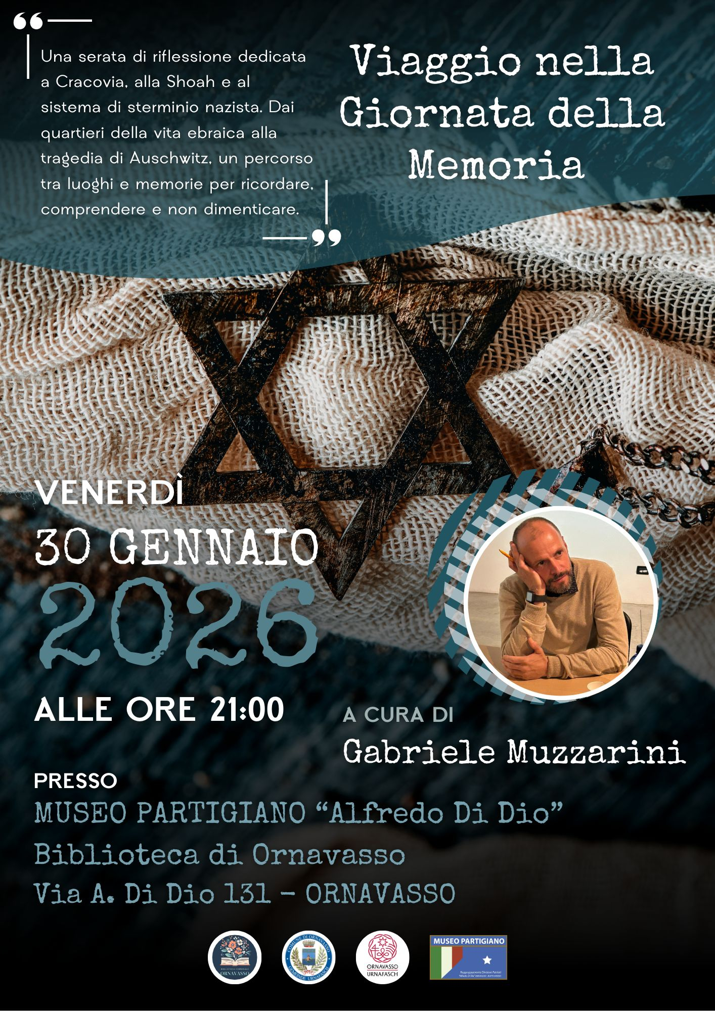 Venerdì 30 gennaio 2026 alle ore 21.00 presso Museo Partigiano "Alfredo Di Dio" Biblioteca di Ornavasso, Viaggio nella Giornata della Memoria