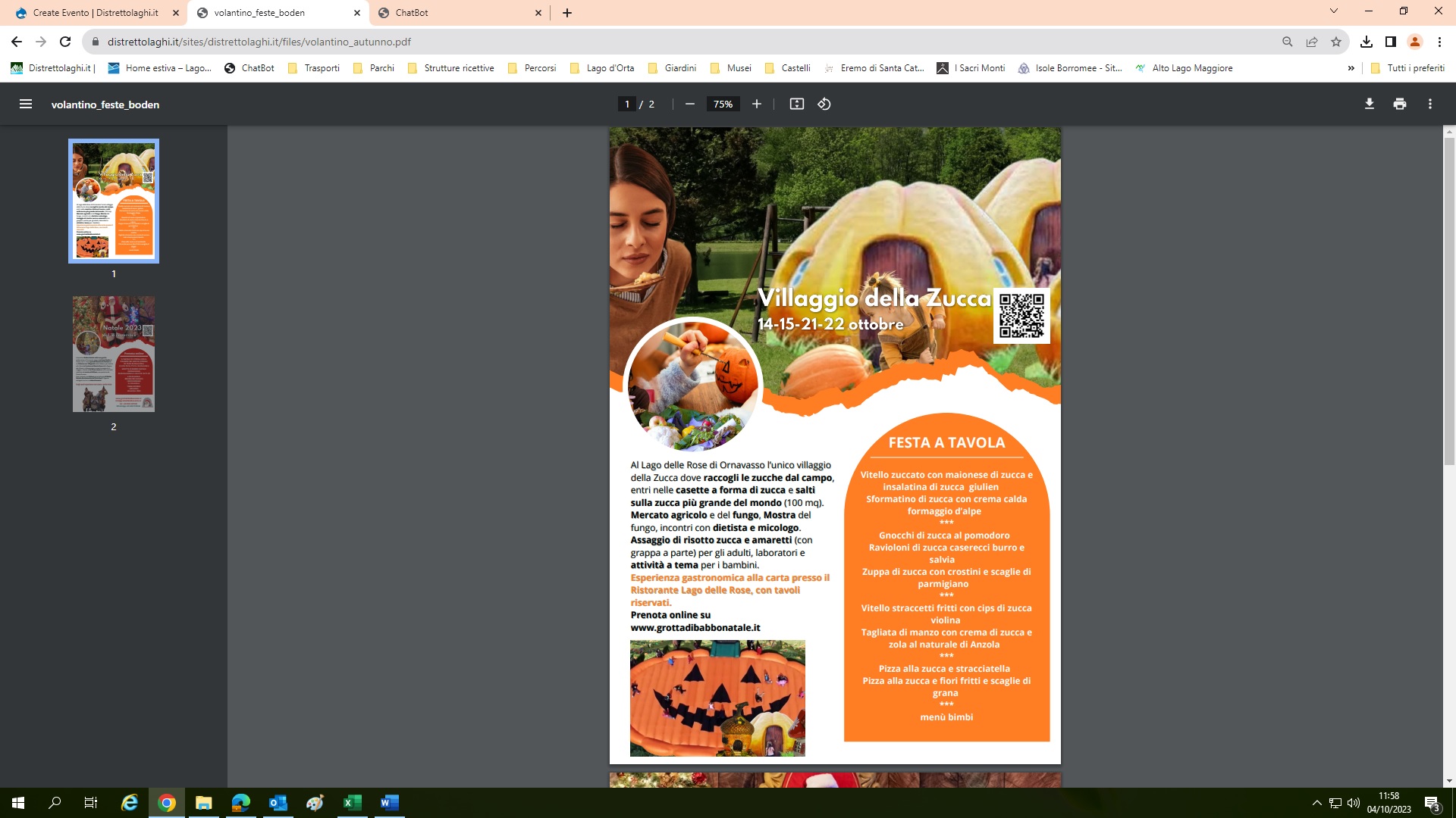 Il Lago delle Rose di Ornavasso si trasforma nel Villaggio delle Zucche, con raccolta, decorazione e intaglio delle zucche, casette a tema, un grande salterello a forma di zucca da 100 mq, mostra di funghi, esperienze ed attività per bambini e famiglie a cura di Grotta di Babbo Natale. Un gustoso pensiero anche per i genitori: la degustazione di risotto alla zucca compresa nel biglietto.