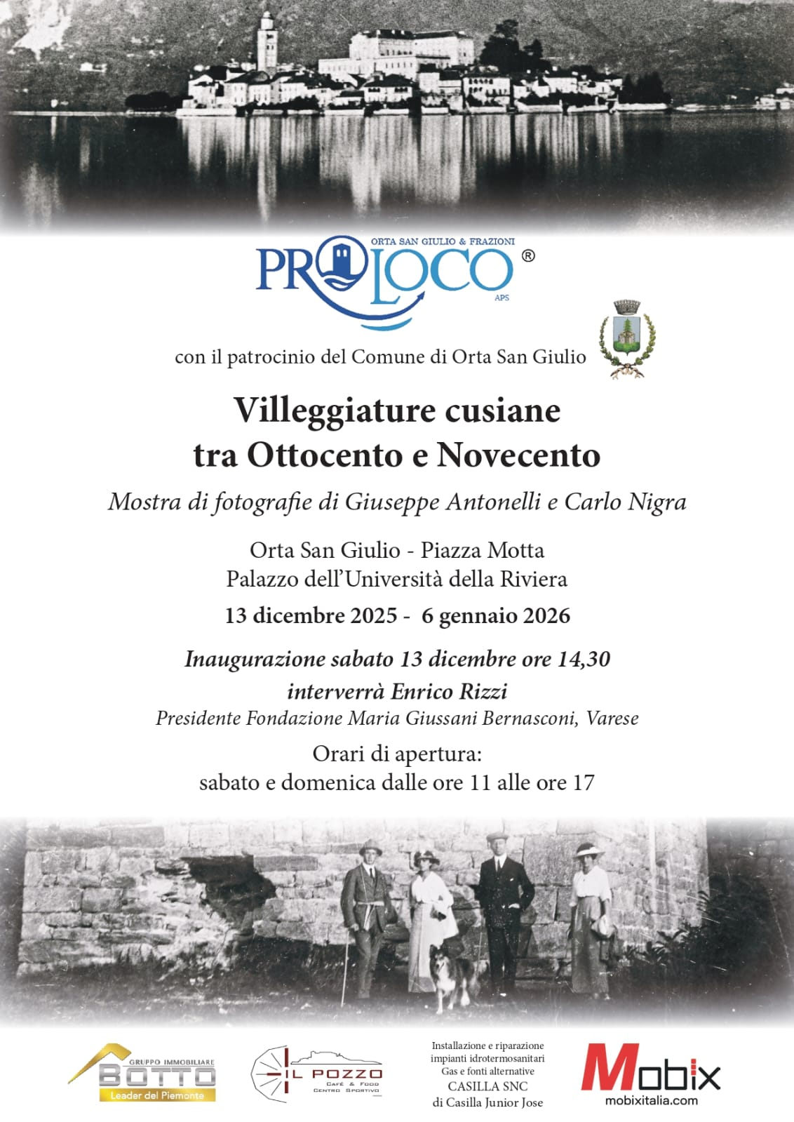 Mostra fotografica presso Palazzotto di Orta San Giulio dal titolo "Villeggiature cusiane tra Ottocento e Novecento" con fotografie di Giuseppe Antonelli e Carlo Nigra.