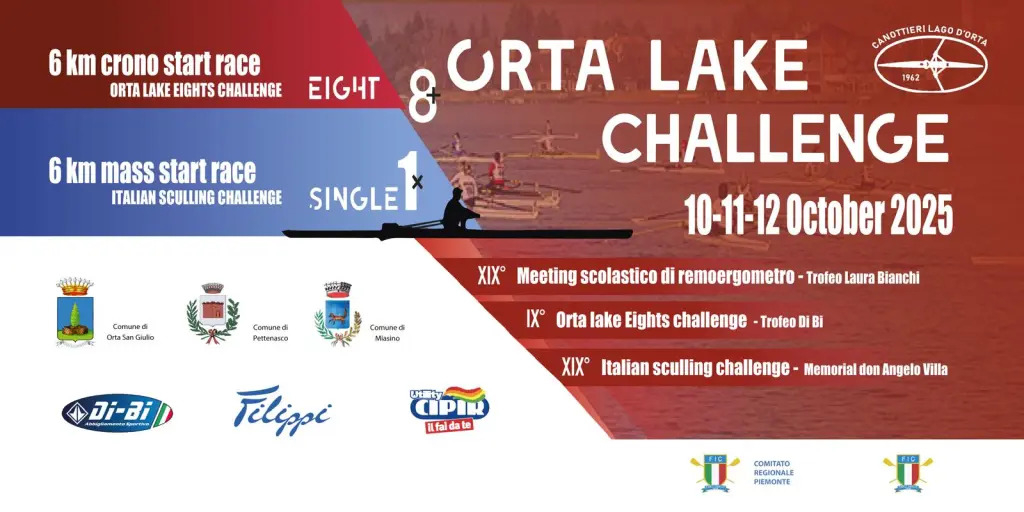 Cresce l’attesa per l’edizione 2025 dell’Orta Lake Challenge: quella in programma l’11/12 ottobre sulle acque del meraviglioso Lago d’Orta sarà davvero come un’edizione di grande rilievo nella storia dell’evento, contrassegnata da uno spettacolare RECORD di partecipanti! Sono infatti ben 53 gli equipaggi iscritti all’Orta Eights Lake Challenge, numeri che rendono questa gara la più partecipata in Italia nel 2025 per quanto riguarda gli otto! Ottimi anche i numeri dei singoli iscritti all’Italian Sculling Challenge, con circa 130 atleti, come negli anni migliori! Si sta quindi confermando e anzi rafforzando il trend di crescita dell’evento come sempre organizzato dalla Canottieri Lago d’Orta, non solo in quantità, ma anche in qualità: saranno davvero tanti i campioni presenti, con diverse medaglie olimpiche e campioni mondiali; ben 8 (tra cui la Cina) le nazioni rappresentate, a testimoniare che l’apprezzamento cresce anche a livello internazionale. Non solo: con numeri in continua crescita Orta Lake Challenge è diventato di fatto un evento di alto livello anche sotto il profilo della promozione del territorio. Come sempre sarà il classico e peculiare percorso da 6 km, con partenza e arrivo in Regione Bagnera e la circumnavigazione dell’Isola di San Giulio, a caratterizzare questo evento.