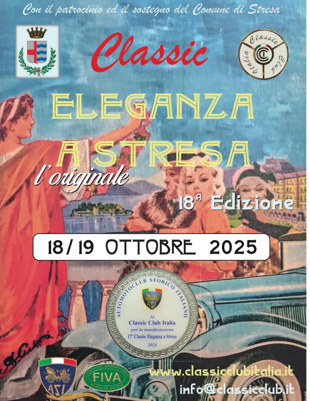 Sabato 18 ottobre e domenica 19 ottobre si terrà la 18a Ed. di Classic Eleganza a Stresa Raduno e esposizione di auto storiche