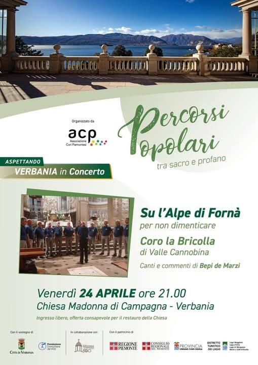 Venerdì 24 aprile alle ore 21.00 si terrà Percorsi Popolari: tra sacro e profano con “Su l’Alpe di Fornà – per non dimenticare” con il Coro La Bricolla di Valle Cannobina.