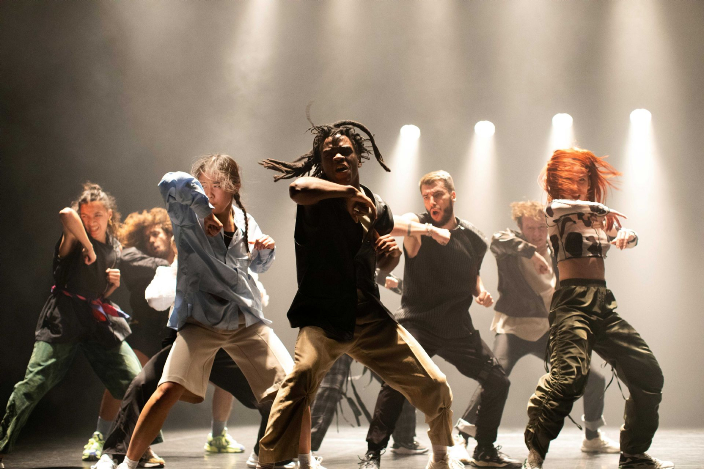 Rave Lucid, lavoro per dieci ballerini, è un omaggio all’electro-dance, la prima danza urbana francese nata nei club negli anni 2000 prima di migrare nel mondo della street dance.