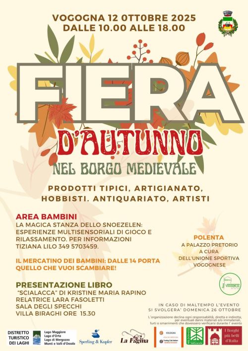 Tradizionale Fiera d'Autunno a Vogogna in programma domenica 12 ottobre dalle...